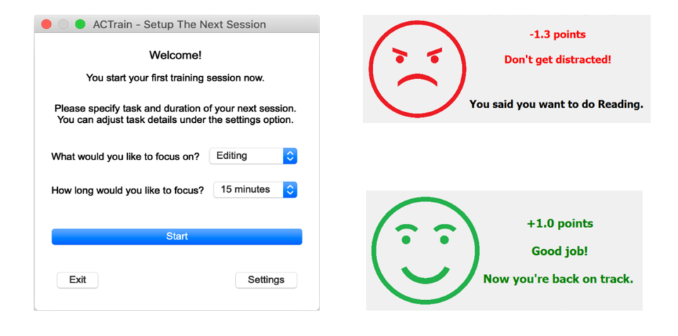In this project, we develop a computer-based training application that can enhance individual attention control abilities when people get distracted. To promote metacognitive reinforcement learning, the training provides metacognitive feedback on the value of goal-directed attention when people distract themselves from a self-chosen task. Contrary to existing approaches that use artificial tasks in non-transferable situations, our approach re-designs real-world settings into optimal learning environments for stable and sustainable skill acquisition.